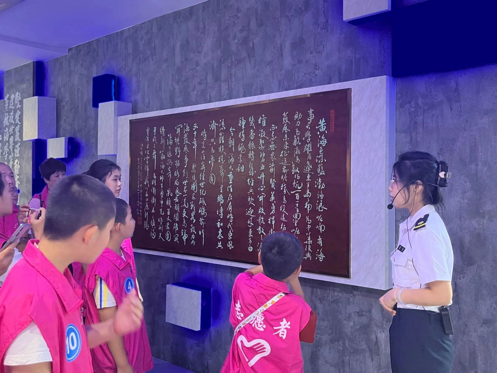 在参观过程中,志愿者们详细解答每一个小朋友关心的问题,帮助他们感受海大深厚的文化底蕴,树立青少年海洋强国的梦想。